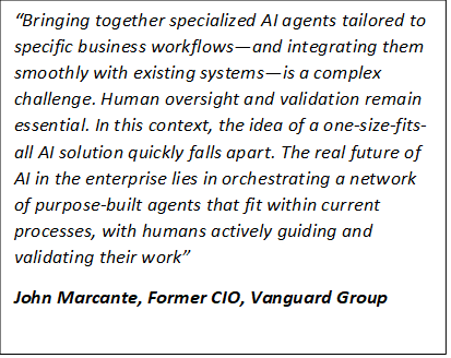 While Generative AI along with the rise of Agentic AI have demonstrated extraordinary potential, its swift ascent has sown considerable confusion and chaos within organizations. Amid the hype, many are in search of a “silver-bullet” solution—a singular AI platform that could magically resolve all organizational challenges. However, this notion is far from reality given the current maturity of AI. The reality of implementing all-encompassing agentic AI is far more complex, organizational processes and workflows are intricate and vary significantly, necessitating a more nuanced approach to AI implementation.
